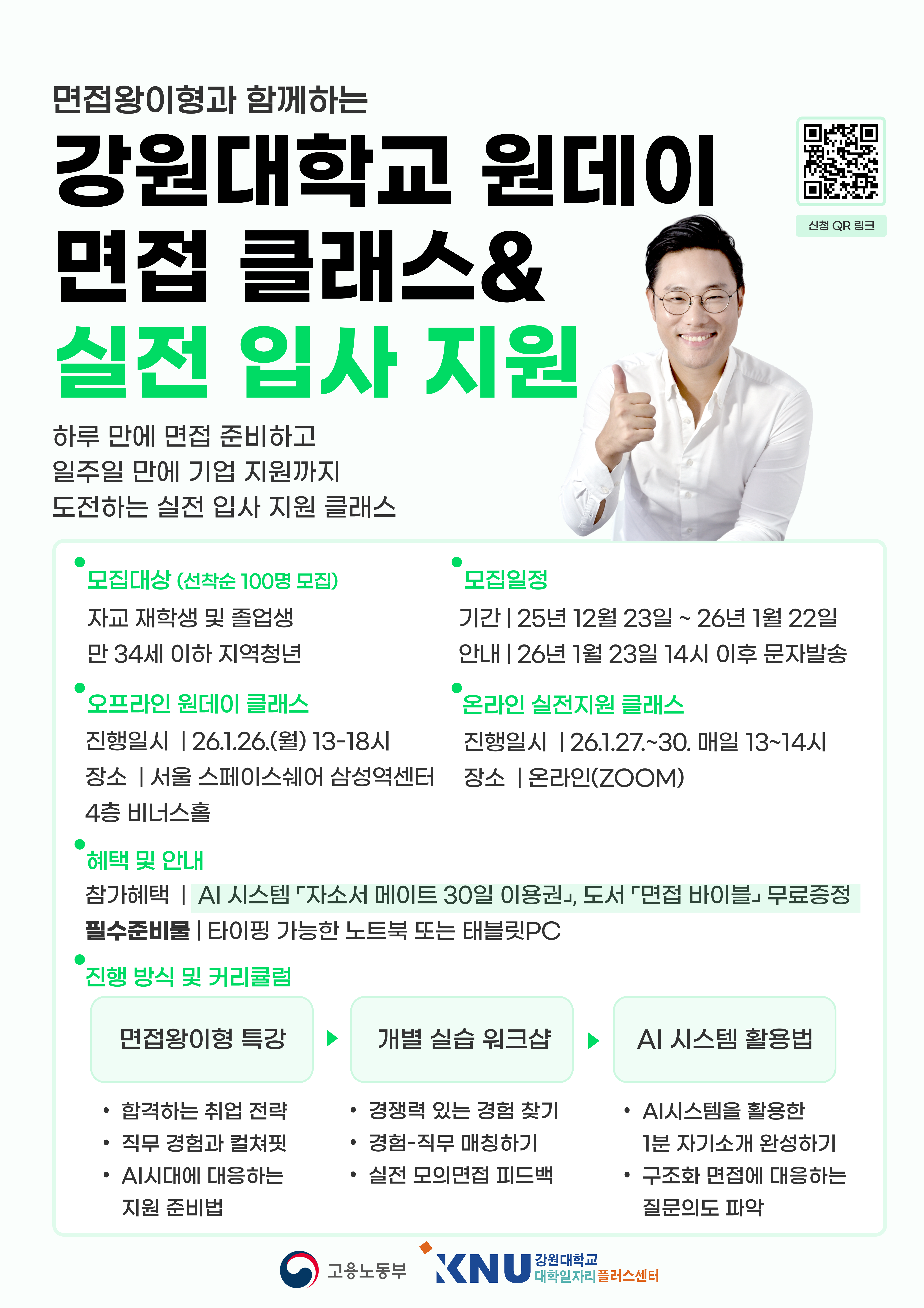 『면접왕 이형과 함께하는 원데이 면접 클래스 & 실전 입사 지원』 모집 안내